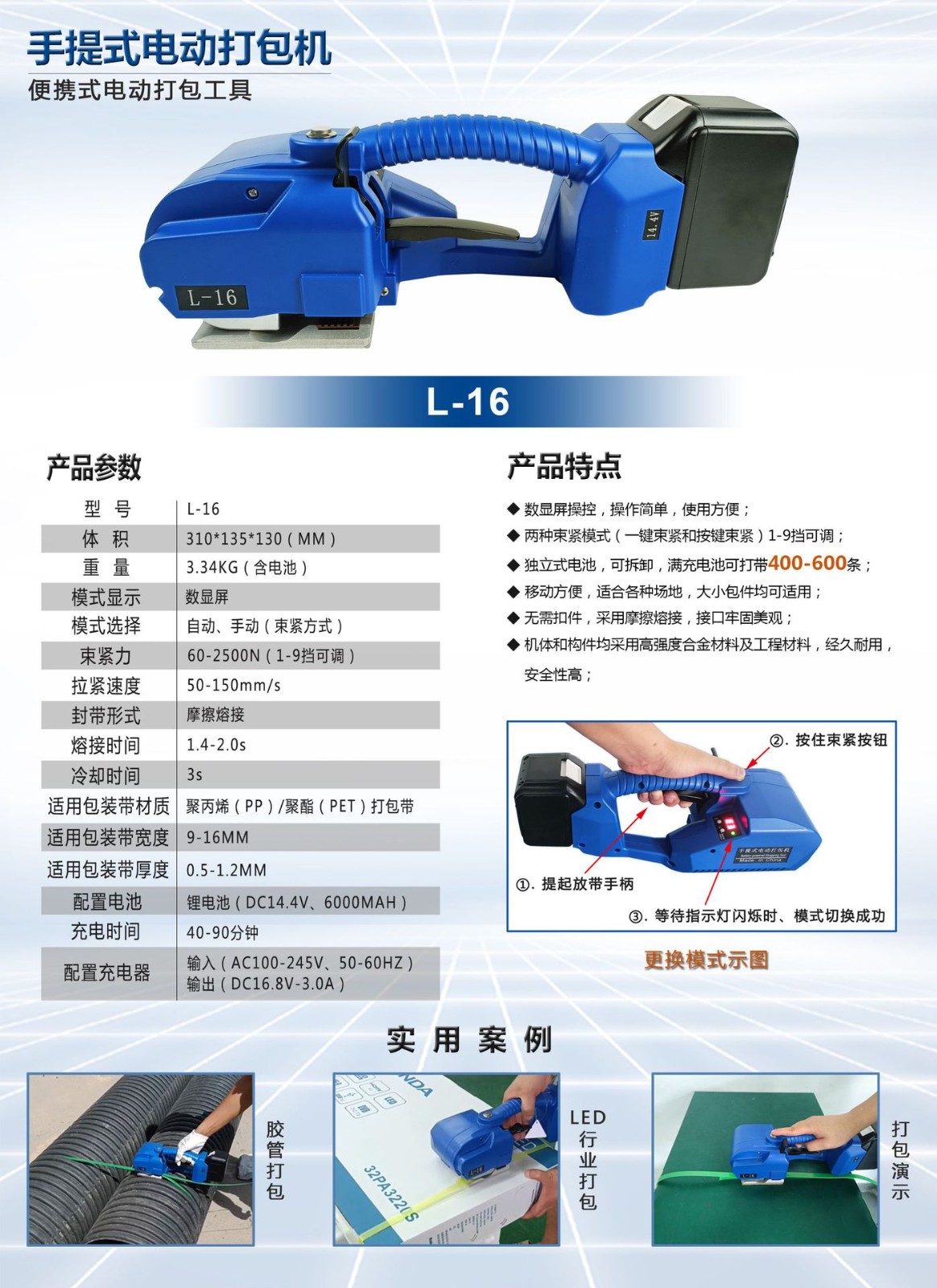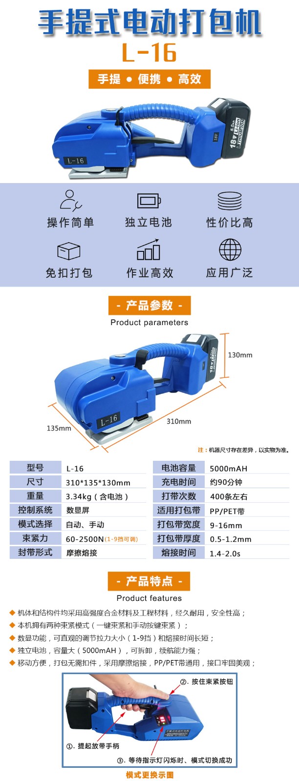 L-16手持電動打包機的優勢是什么呢?