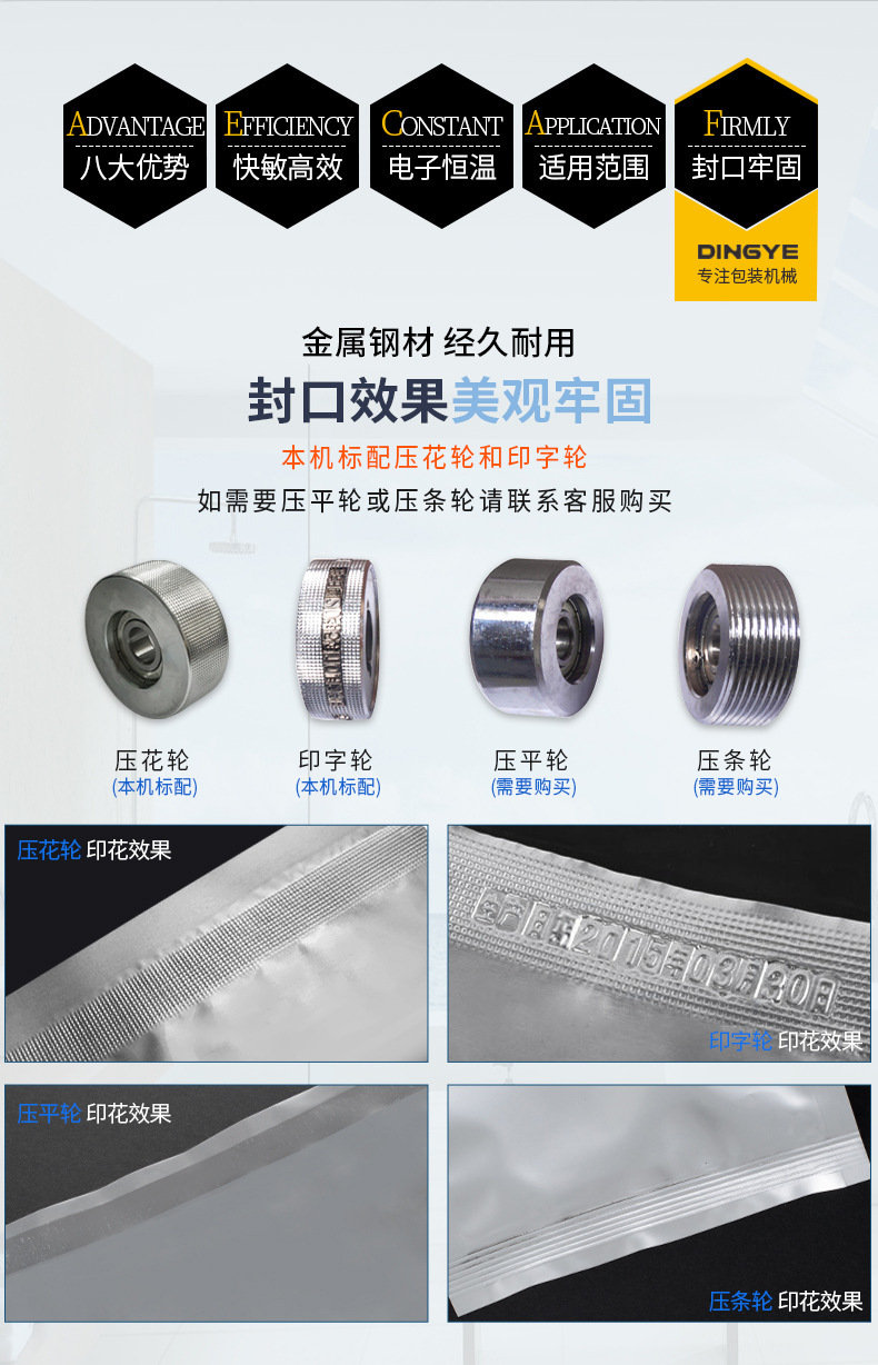 - 適用范圍廣:可以適應多種材質、厚度和尺寸的包裝袋,如塑料薄膜袋、鋁箔袋、復合袋等,還能根據不同的包裝需求,通過更換模具、調整參數等方式,實現對不同產品的封口包裝,滿足各行業的多樣化包裝要求145.