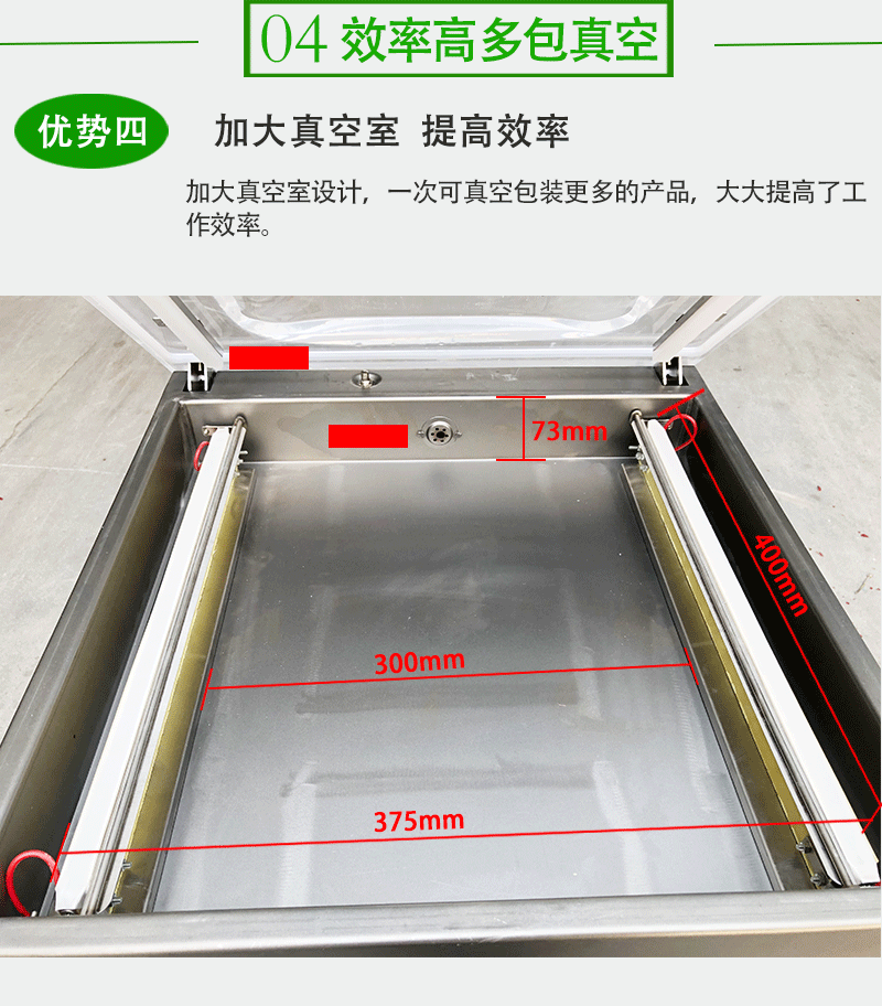 - 適用性強:雖然只有一個真空室,但只要包裝袋尺寸在真空室容納范圍內,就能處理各類形狀、材質的產品包裝,無論是食品、日用品,還是小五金、電子元件等,都可適用。
