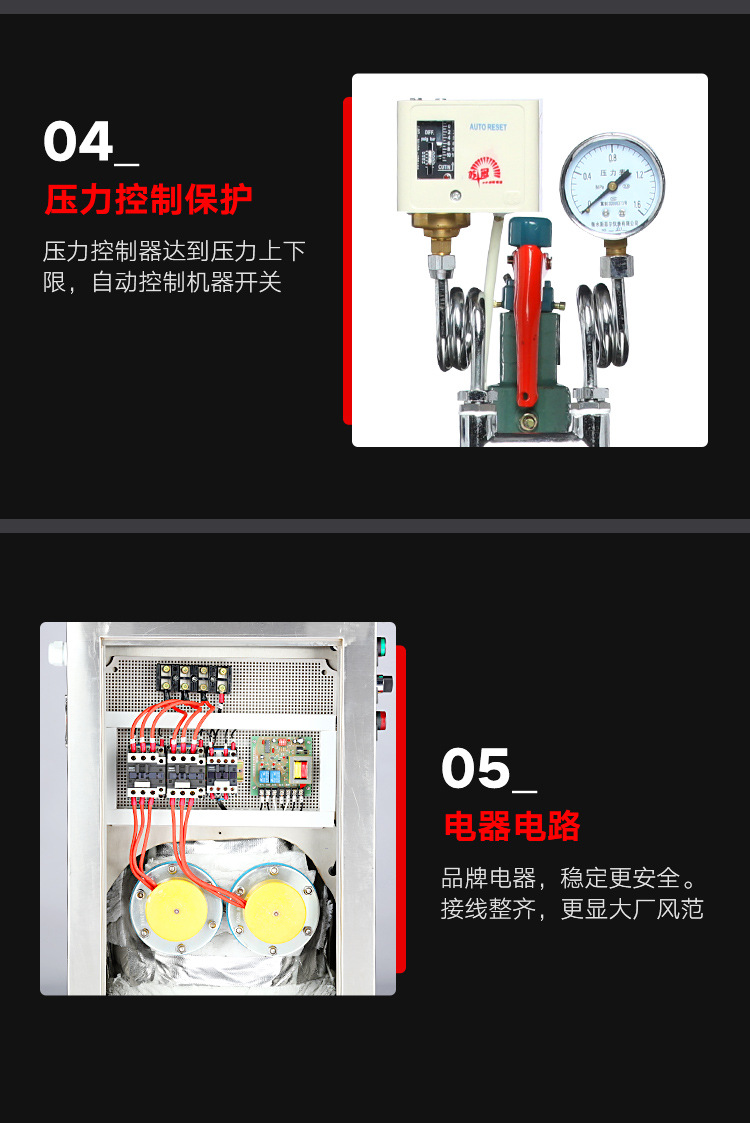 - 安全性能:優(yōu)先選配備完善安全保護(hù)裝置的產(chǎn)品,查看安全閥、壓力表、漏電保護(hù)等裝置是否齊全且符合標(biāo)準(zhǔn)。