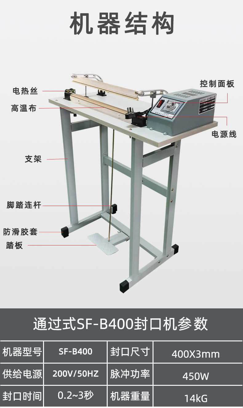 - 傳動部件故障:如腳踏板的連桿機構、齒輪等傳動部件出現磨損、松動或卡死現象,會使封口動作不順暢,影響封口的一致性和穩定性。