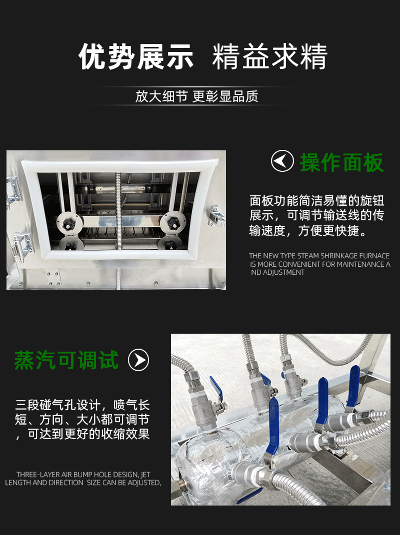 - 例如,在瓶裝礦泉水的生產(chǎn)中,蒸汽收縮機(jī)可使瓶身的塑料標(biāo)簽緊密貼合,不僅美觀,還能起到一定的防偽作用。