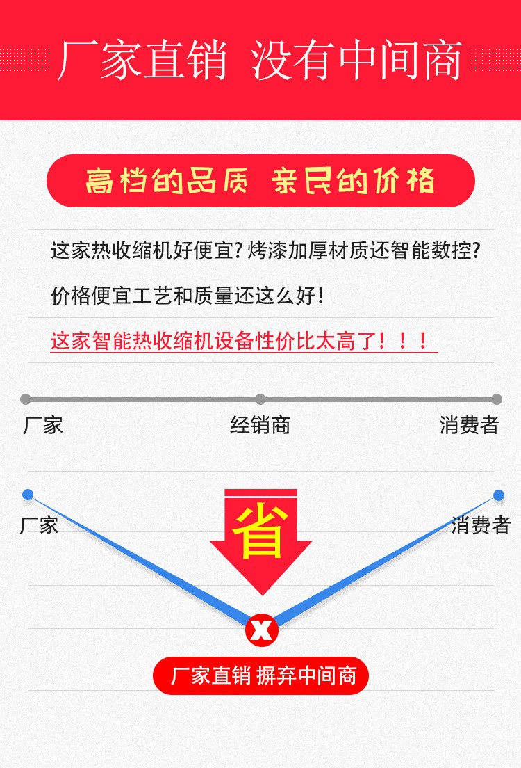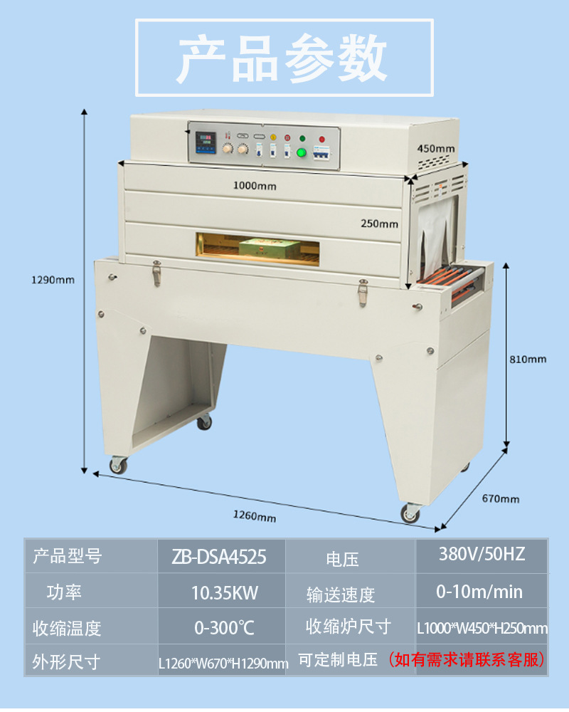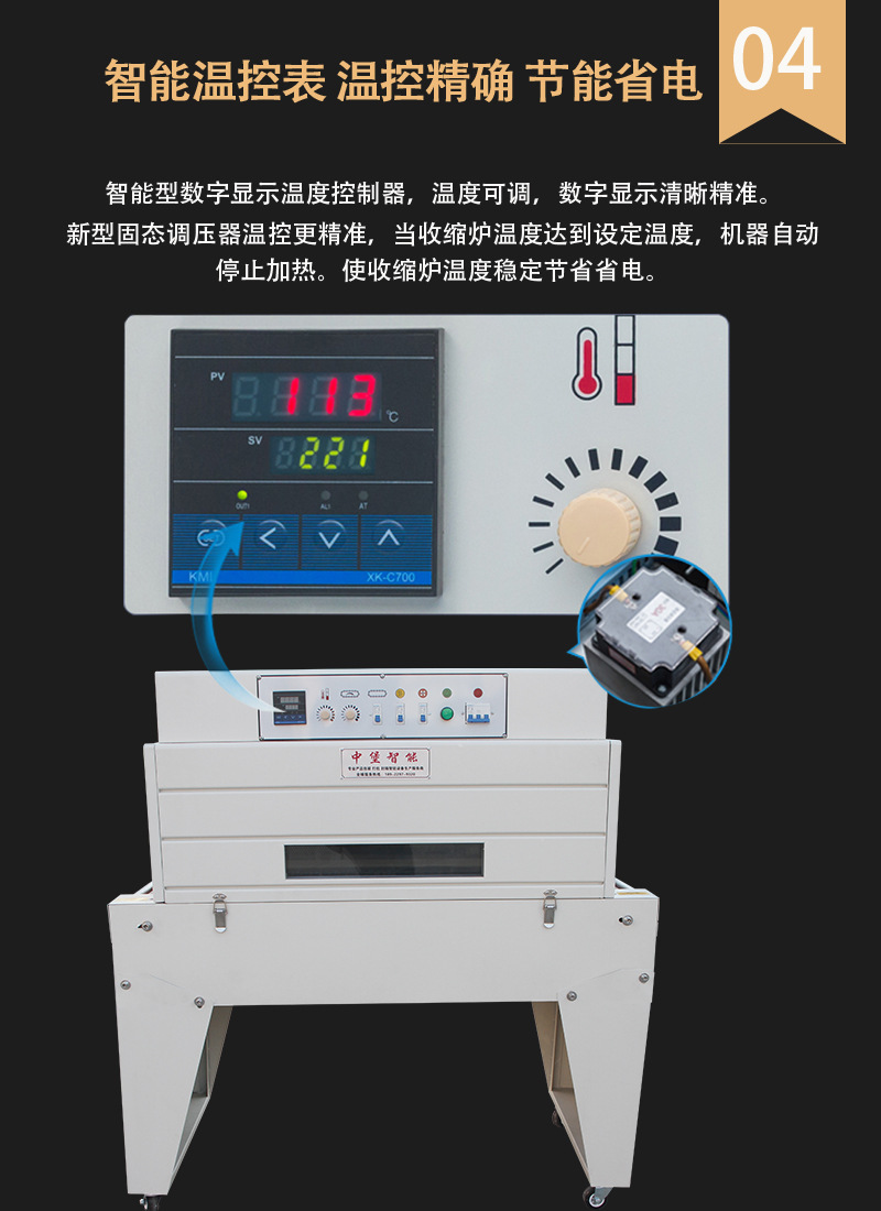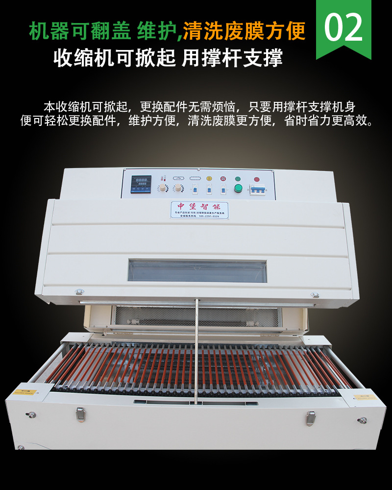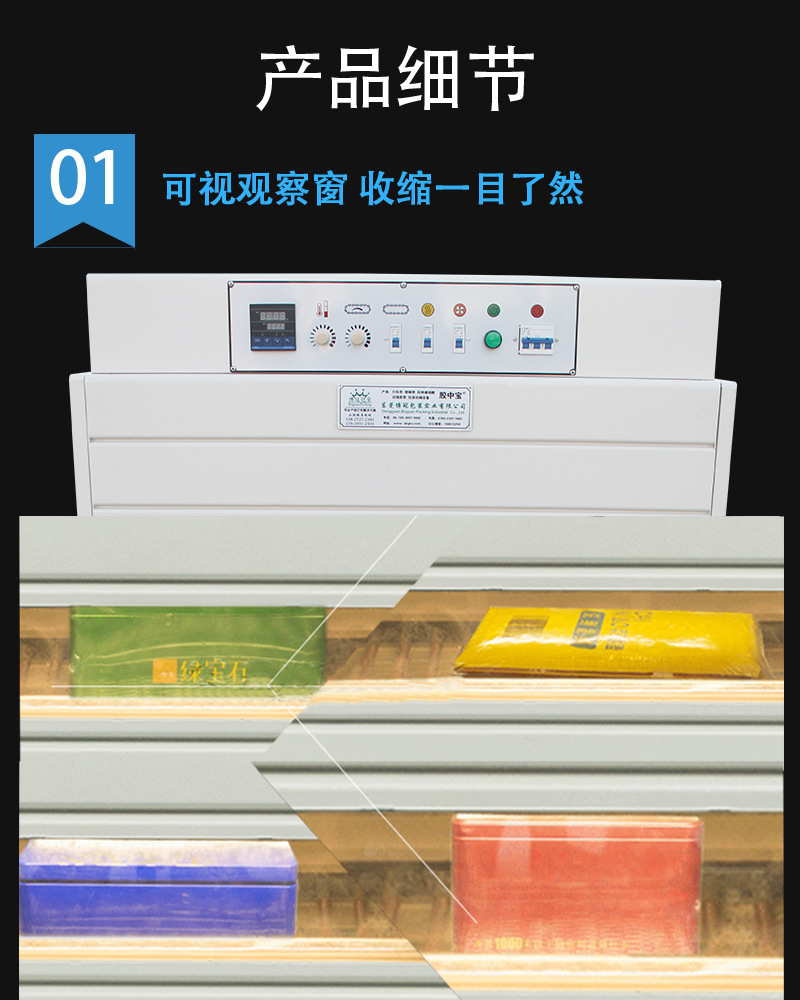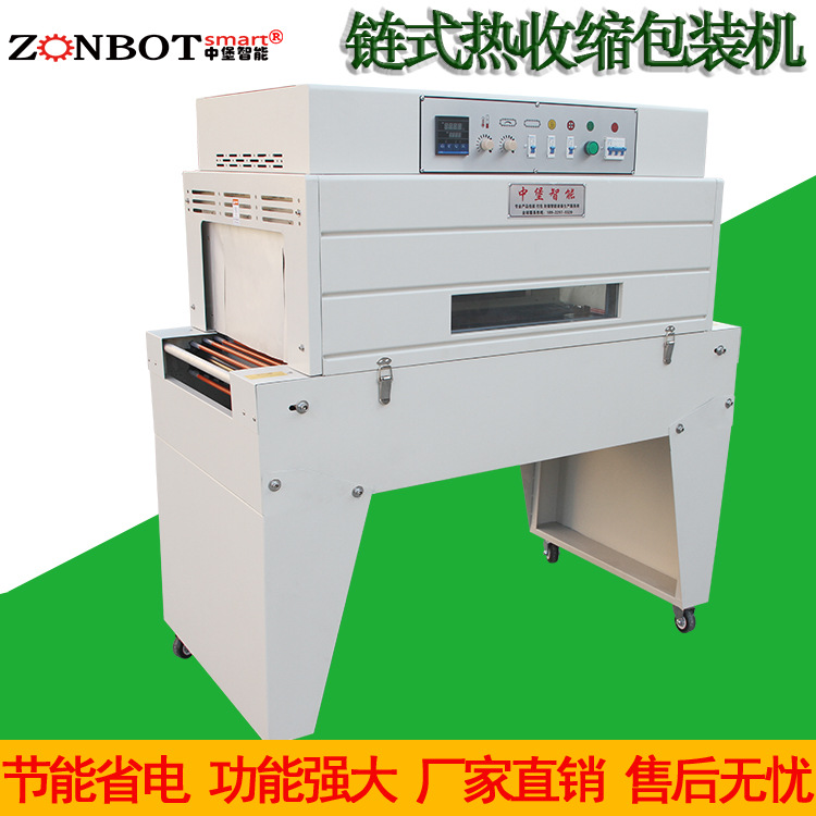 工作時,產品放置在鏈條上,隨著鏈條的移動進入加熱區域。加熱區域產生高溫,使包裹產品的熱收縮膜受熱收縮,從而緊密貼合在產品表面,達到包裝的目的。