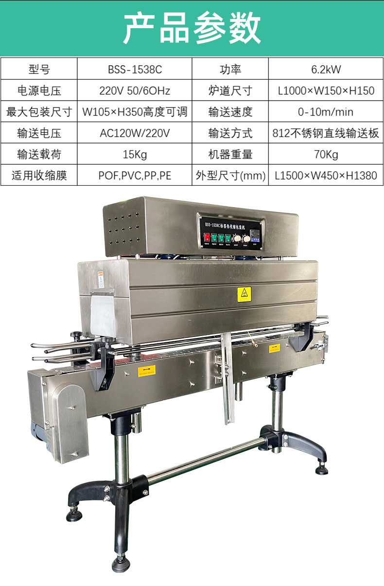 - 控制系統:用于設定和調節加熱溫度、輸送速度等參數,以滿足不同產品的熱收縮需求。