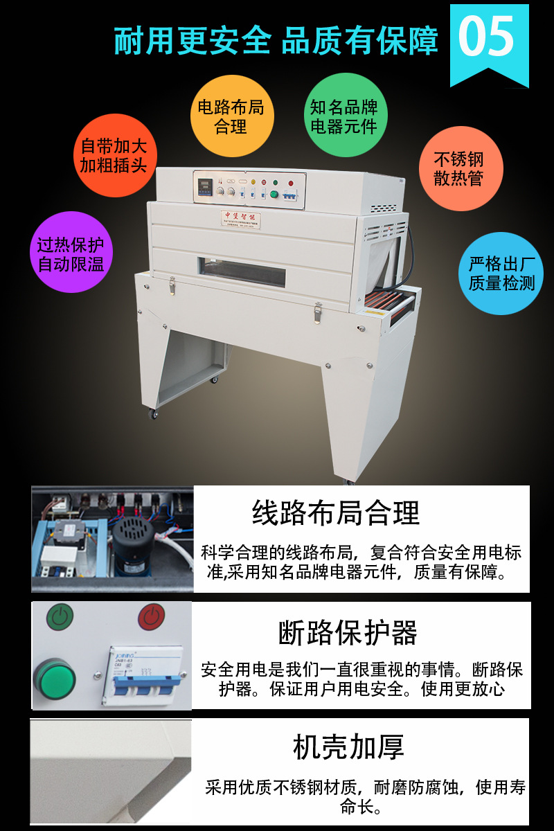 - 加熱功率:功率越大,升溫速度越快,能夠在更短的時間內使熱收縮膜達到收縮溫度,從而提高包裝效率。例如,高功率的熱收縮包裝機可以在幾秒鐘內將收縮膜加熱至合適溫度,而低功率的設備可能需要更長時間。