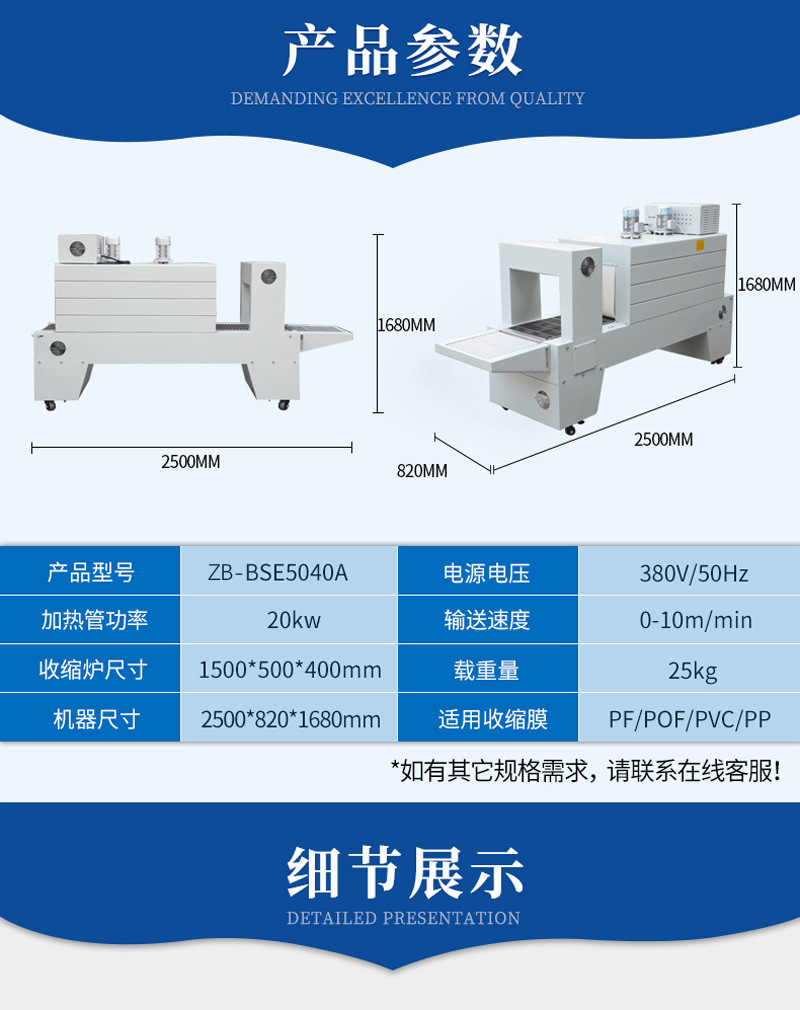 • 高效加熱方式:如采用先進的加熱元件或技術,能快速升溫且熱量分布均勻,在保證包裝效果的同時,降低能源消耗。