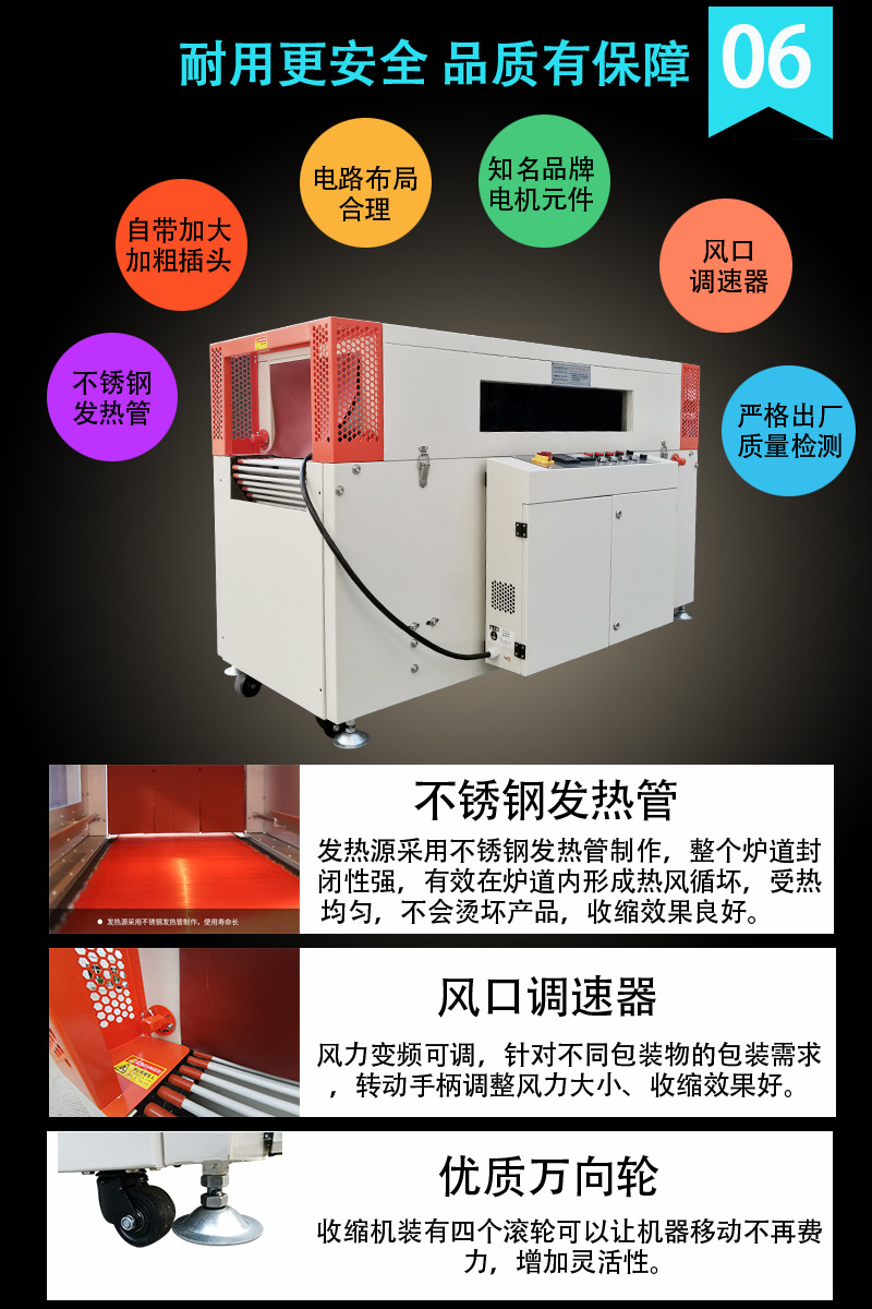 - 熱收縮機配備了多種安全保護裝置,確保操作人員的安全。例如,設備設有防護欄、緊急停止按鈕、溫度傳感器等,當出現(xiàn)異常情況時,能夠及時停止設備運行,避免事故的發(fā)生。