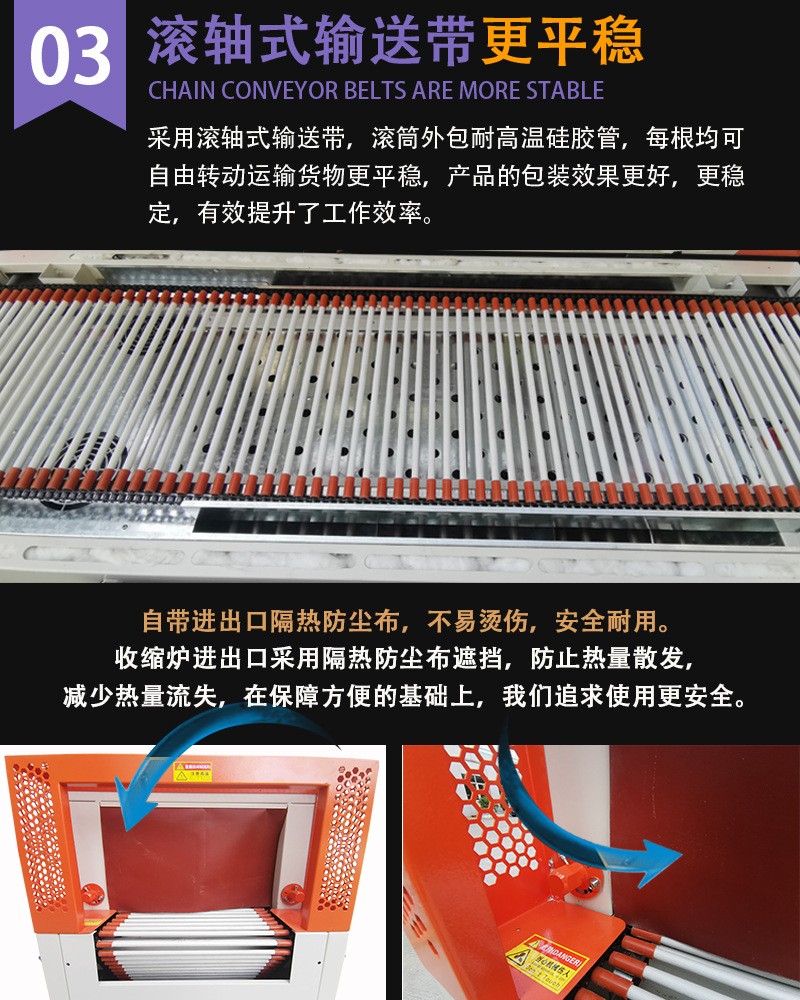 - 熱收縮機還可以根據(jù)產品的特殊要求進行定制化設計,例如對于一些需要特殊保護的產品,可以增加緩沖材料或采用特殊的收縮膜材質。