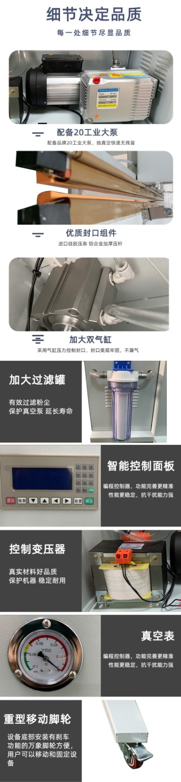 - 封口系統(tǒng):包括封口條和加熱裝置。封口條一般是由耐高溫的材料制成,加熱裝置能夠快速升溫,使包裝袋在真空狀態(tài)下封口。封口系統(tǒng)的溫度和時(shí)間可以根據(jù)包裝袋的材質(zhì)和厚度進(jìn)行調(diào)節(jié),以保證封口的質(zhì)量,防止漏氣。