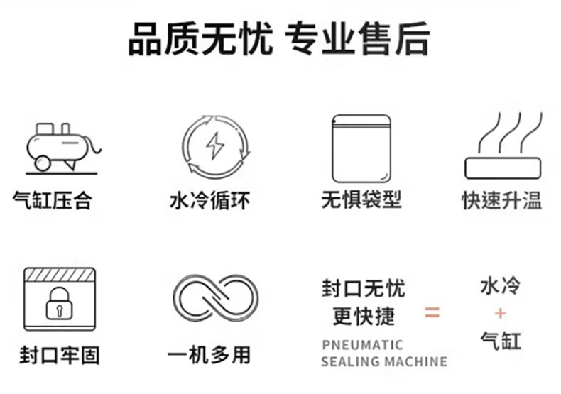 - 封口質量高:水冷技術能夠快速冷卻封口部位,使封口更加牢固、平整,避免出現封口不牢、褶皺等問題,提高了包裝的密封性和美觀度。