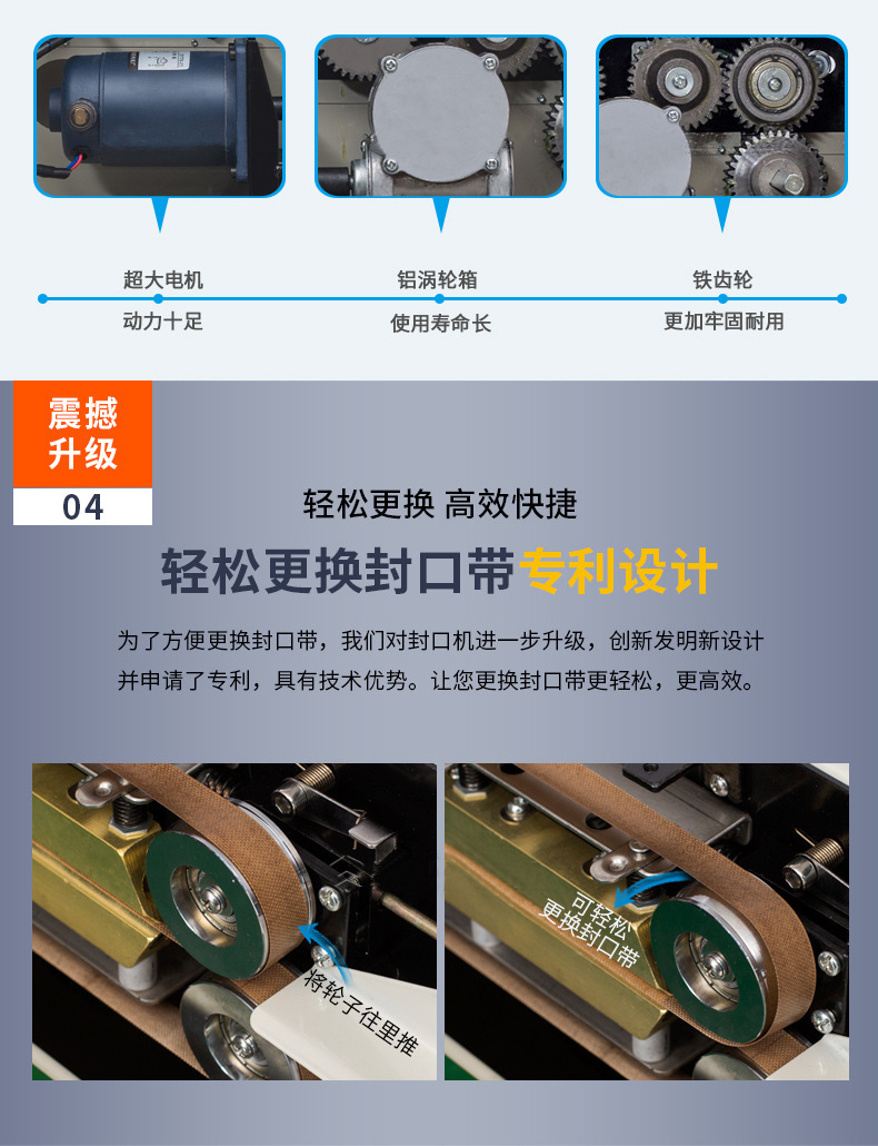 - 高效連續(xù)工作:能夠不間斷地對包裝進(jìn)行封口,大大提高了生產(chǎn)效率,減少了設(shè)備頻繁啟動和停止帶來的能源損耗和機械磨損,延長了設(shè)備的使用壽命,降低了生產(chǎn)成本。其封口速度可以根據(jù)輸送帶的速度進(jìn)行調(diào)節(jié),一般每分鐘可以封口 10-50 個包裝,具體速度取決于包裝的大小和復(fù)雜程度1.