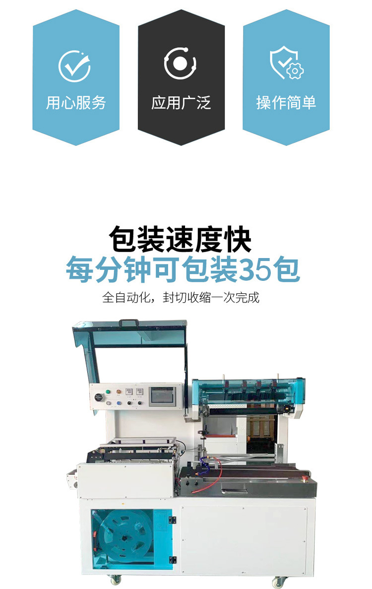 全自動封切機具有自動輸送、封口、切斷、收縮等功能。能精準完成包裝流程,保證包裝的美觀和密封性