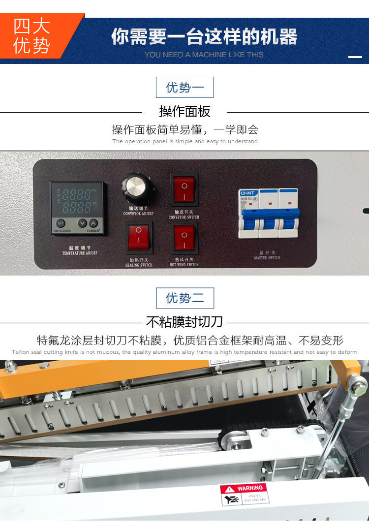 - 收縮效果好:爐道加長加大,內部受熱均勻,可有效避免局部過熱或收縮不充分的問題,使包裝更緊密、美觀.