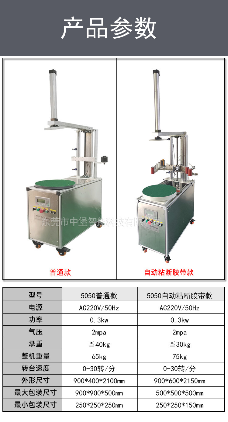 - 纏繞速度:考慮貨物的穩(wěn)定性與包裝精度,選擇合適的纏繞速度。形狀規(guī)則、質(zhì)地硬的貨物,速度可適當(dāng)加快;形狀不規(guī)則、易變形的,建議放慢速度,通常速度范圍在每分鐘 5 - 30 轉(zhuǎn)。