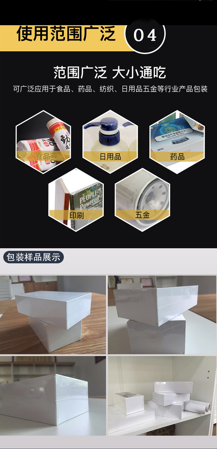 自動封切熱收縮包裝機將封切與熱收縮兩道包裝工序高效整合,實現全自動化運作,在各行業的產品包裝流程里應用廣泛: