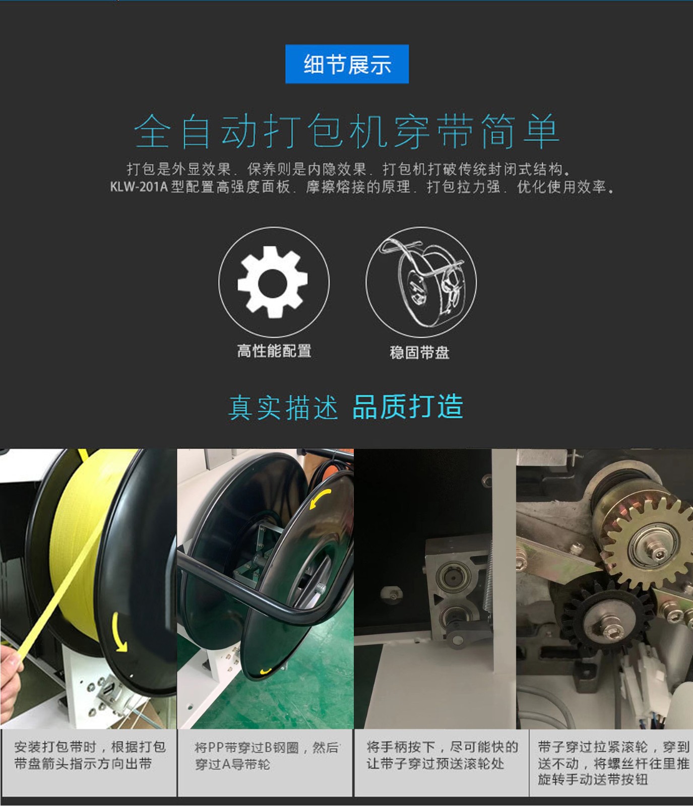 - 適用包帶:多為厚 0.55mm-1.2mm、寬 9mm-15mm 的塑料打包帶 1。