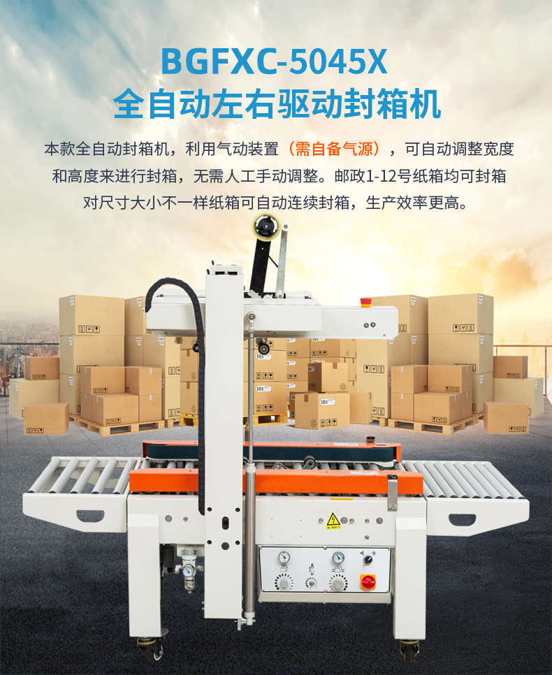 是的,全自動封箱機可自動完成紙箱輸送、定位、折蓋、封箱等全流程操作,以下是其各環節的簡要介紹:
