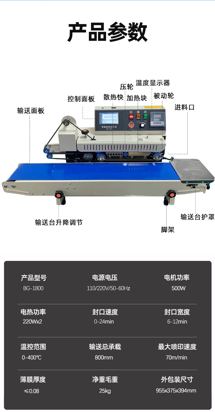 - 封口參數(shù)設(shè)置:可根據(jù)包裝材料的類型(如塑料薄膜、復(fù)合紙等)和厚度,在操作界面上輕松設(shè)置封口溫度、封口時(shí)間和封口壓力等參數(shù)。設(shè)備會(huì)自動(dòng)記憶這些參數(shù),對(duì)于相同類型的包裝,下次使用時(shí)無(wú)需重新設(shè)置。