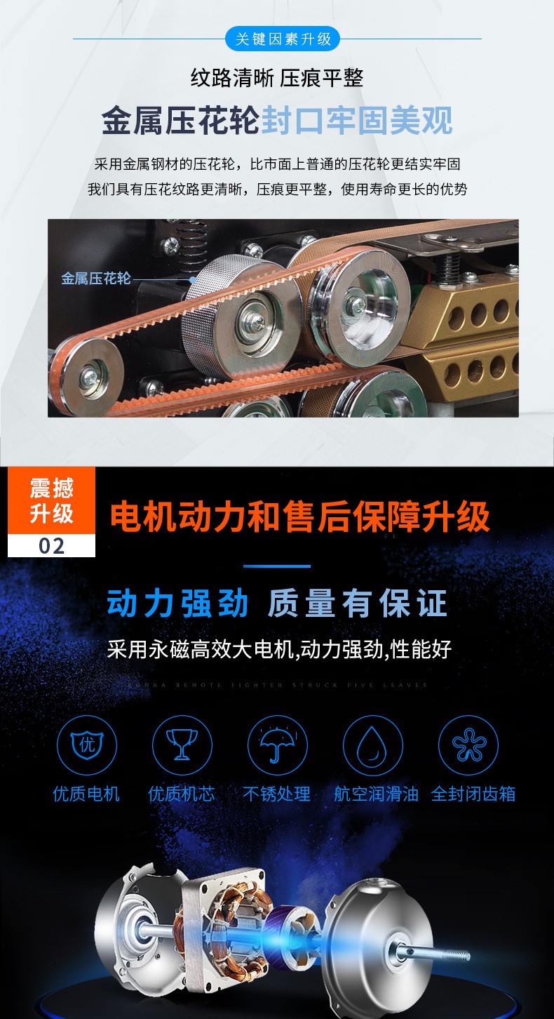 - 功能需求:如是否需要印字、壓花、抽真空、充氮氣等功能,根據實際需求選擇具備相應功能的封口機。