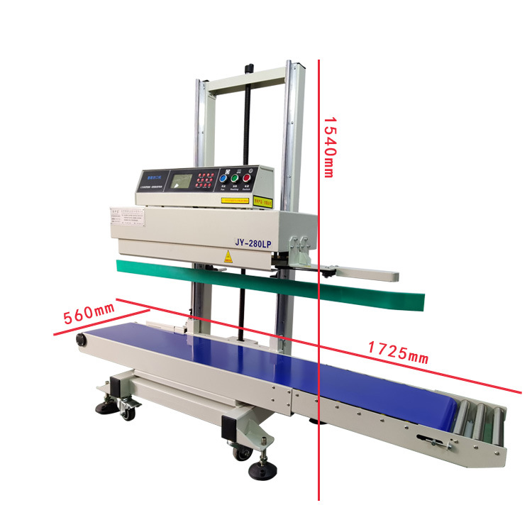 立式連續式封口機由輸送帶、導向橡膠帶等組成,用于輸送待封口的包裝袋,保證其準確地通過各個工作區域