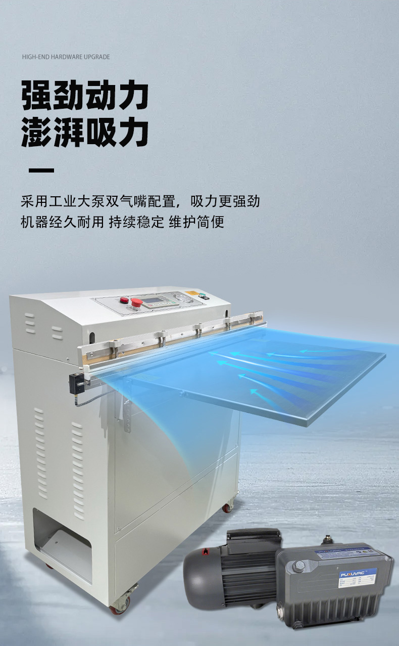 - 工業領域:大型機械零件、金屬構件、整箱電子元件的真空包裝,防止運輸中受潮、生銹。