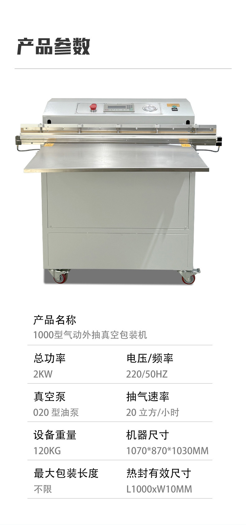 外抽真空包裝機是通過外部抽氣組件抽取包裝袋內空氣并密封,以實現物品防潮、保鮮、防塵的設備,核心優勢是能包裝超腔體尺寸、怕壓或不規則形狀的物品。