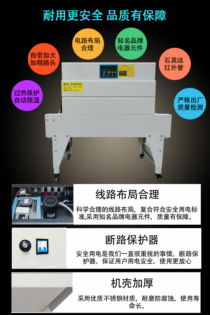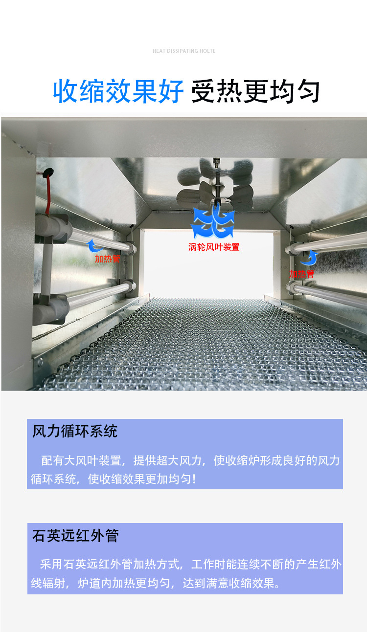 熱收縮機采用的進口材料,保證了產(chǎn)品的質(zhì)量和性能,使您的產(chǎn)品在收縮包裝后,更耐用、更美觀,更具市場競爭力。